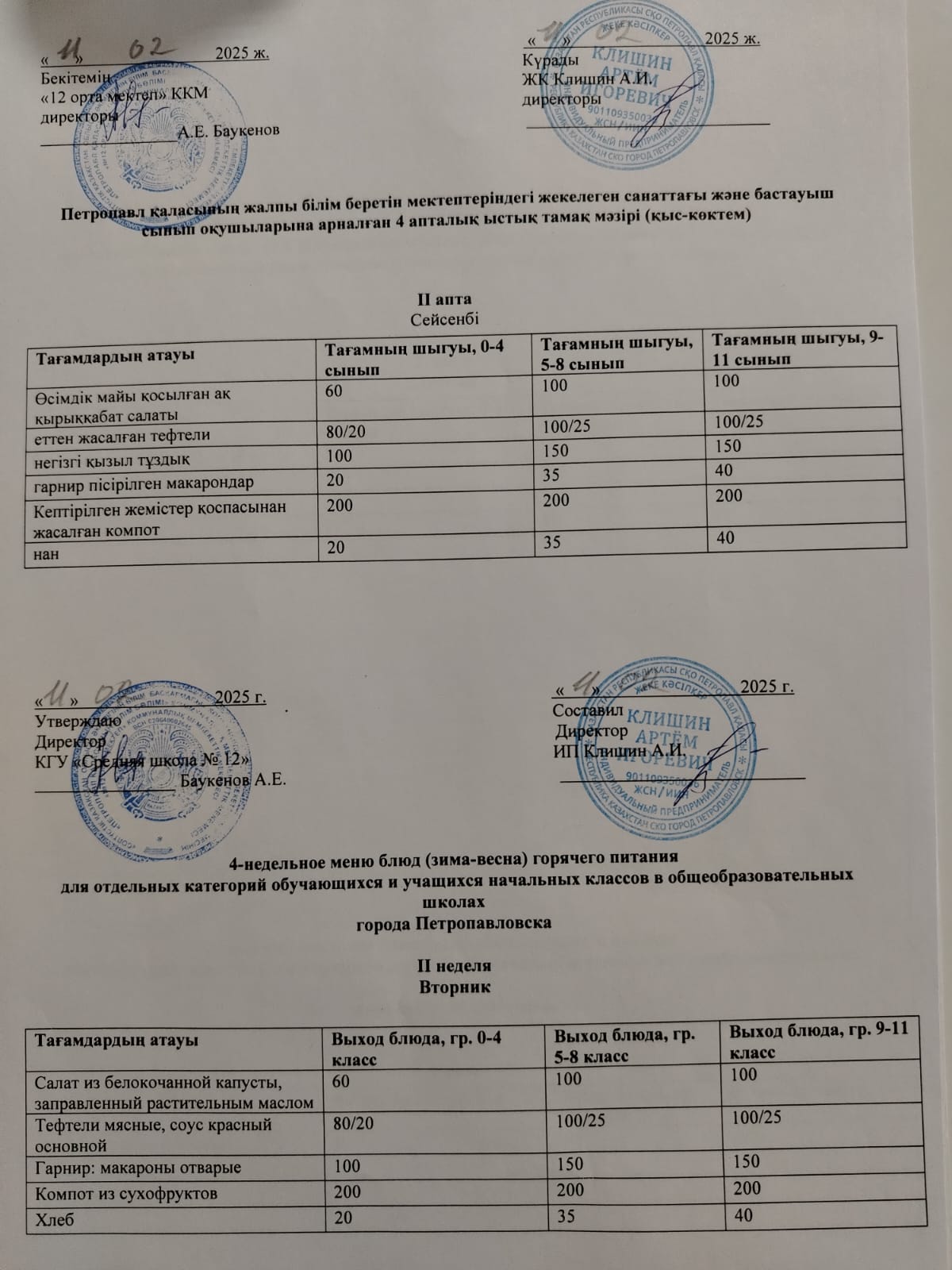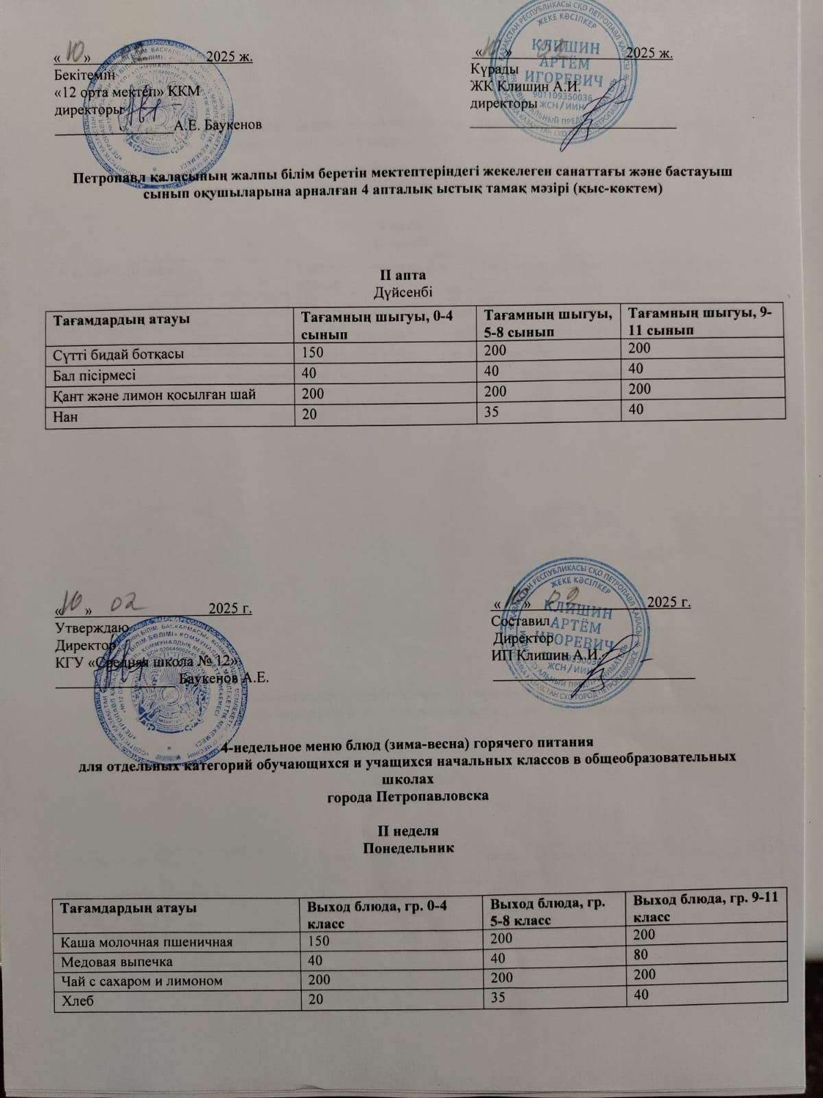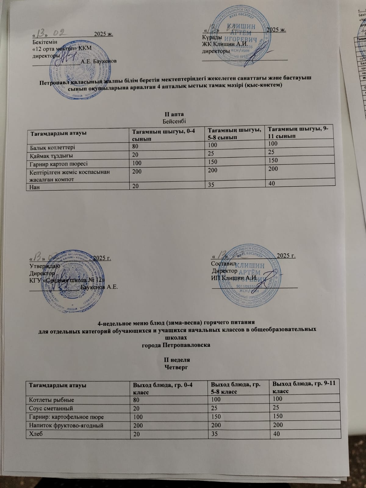 Недельное меню блюд горячего питания, 10.02-14.02