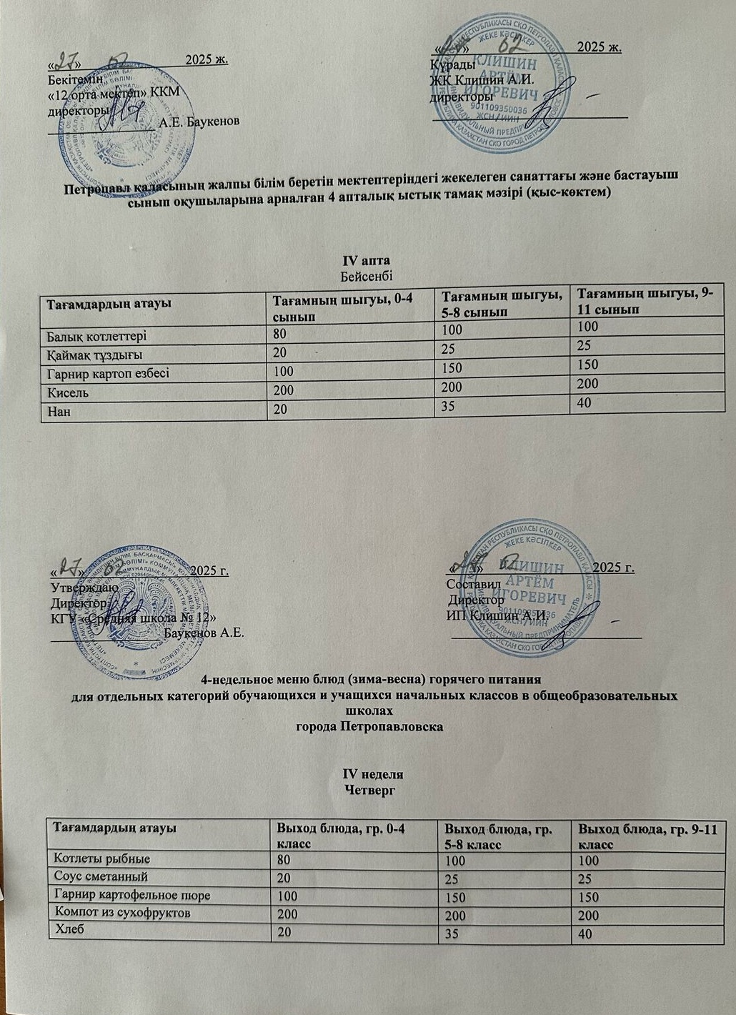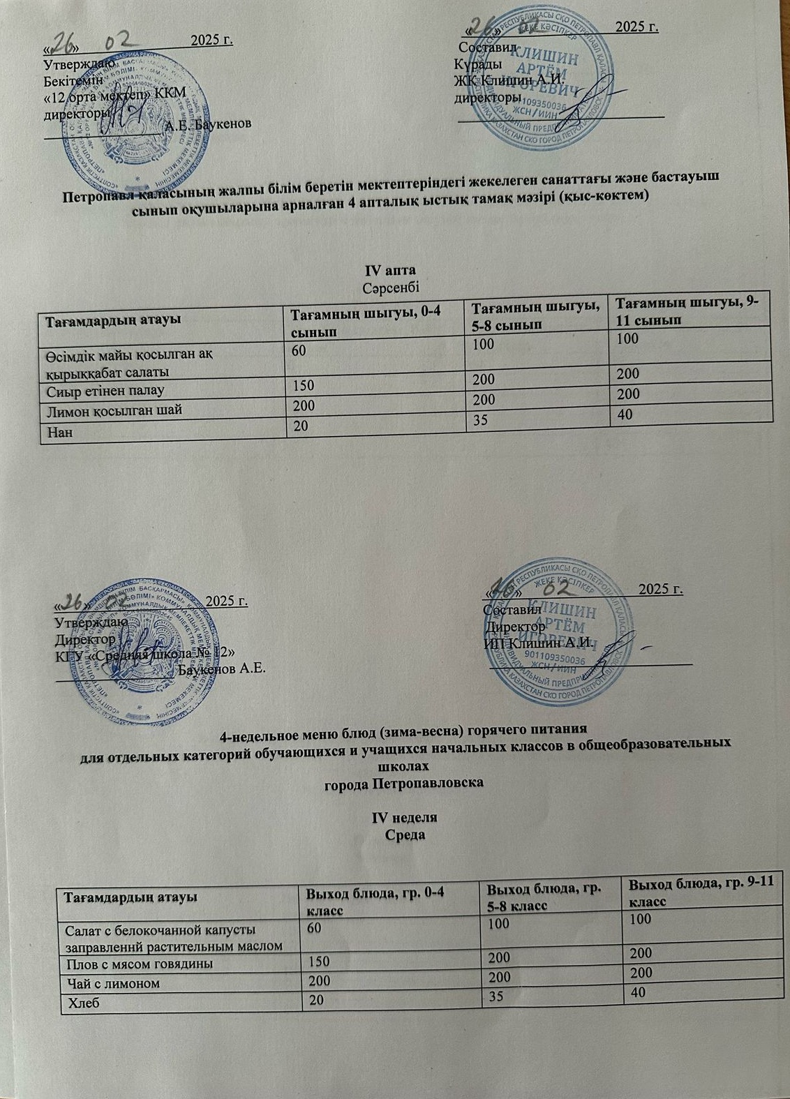 Недельное меню блюд горячего питания 24.02-28.02