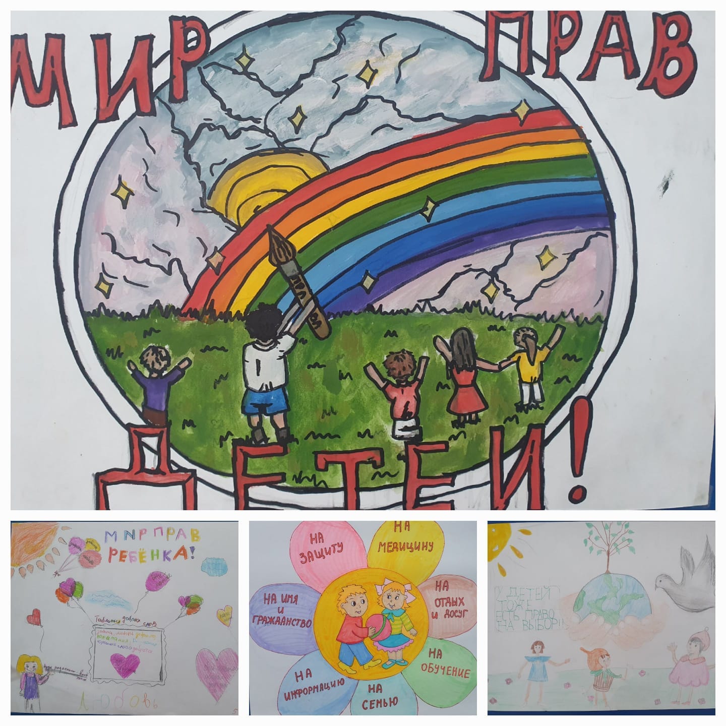Дүниежүзілік балаларды қорғау күніне арналған «Бүкіл әлем мен үшін» онкүндігі аясында 1-11 сынып оқушылары арасында «Мен өмірді сүйемін», «Бала құқығы әлемі» тақырыптарында плакаттар көрмесі өтуде. Балалар көптеген қызықты және түрлі-түсті суреттер жіберді, оларда барлық балалар білуі керек құқықтар мен міндеттер туралы өз ойларын және ең маңызды тұстарын білдірді.
